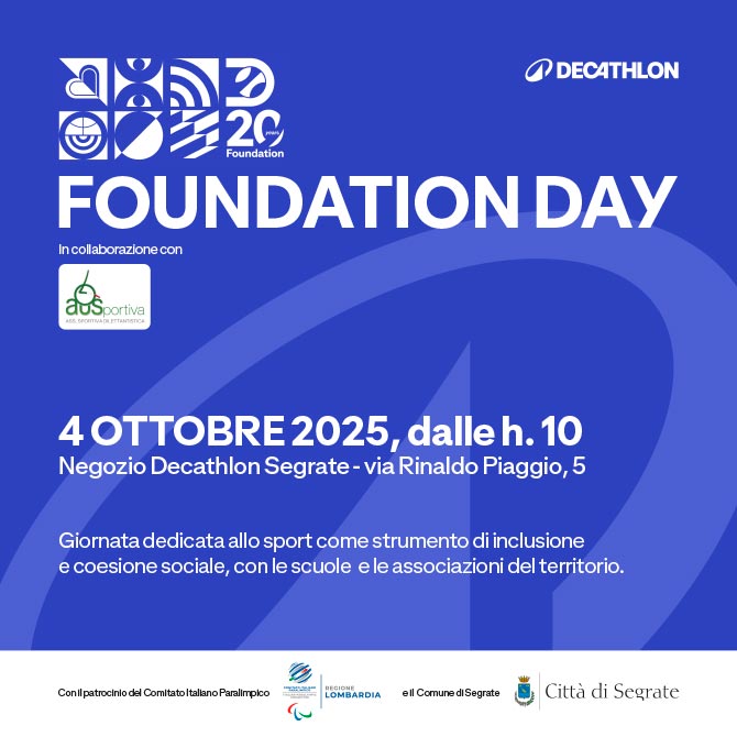 Il 4 ottobre 2025 si celebreranno i 20 anni della Fondazione Decathlon al suo primo Fondation Day sul territorio, un evento speciale organizzato insieme ad A.S.D AUSportiva!